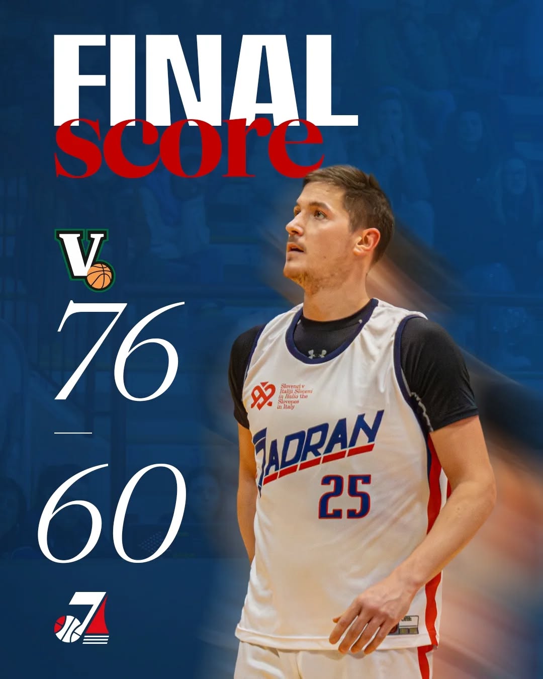 Lo Jadran ha accusato l’assenza di Diminic e la repentina uscita per infortunio di Demarchi (per quanto ci siano state le positive prestazioni di Milisavljevic e Batich) e non è riuscito a conquistare la salvezza diretta nella serie B interregionale maschile. I patavini, salvatisi con questo successo, hanno avuto praticamente l’inerzia sempre in mano, concludendo in vantaggio ogni quarto e allungando i vantaggi in ciascun periodo fino all’apice del +26 al 30’. Jadran atteso dai play-out.