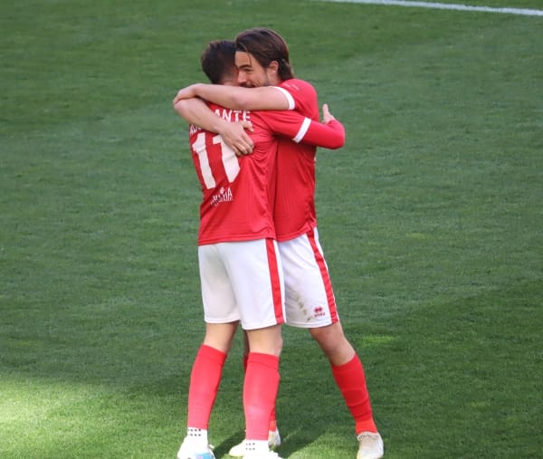 Adorante festeggiato dopo il gol dell'1-0