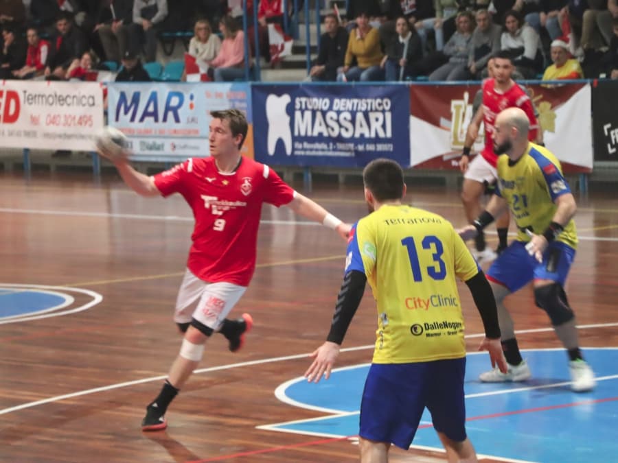 PALLAMANO TRIESTE: Postogna, Zoppetti, Jan Radojkovic 3, Scaramelli 7, Mazzarol, Pernic 3, Urbaz 4, Di Nardo 4, Valdemarin, Visintin, Del Frari, Sandrin 3, Vinkovic. All. Fredi Radojkovic.