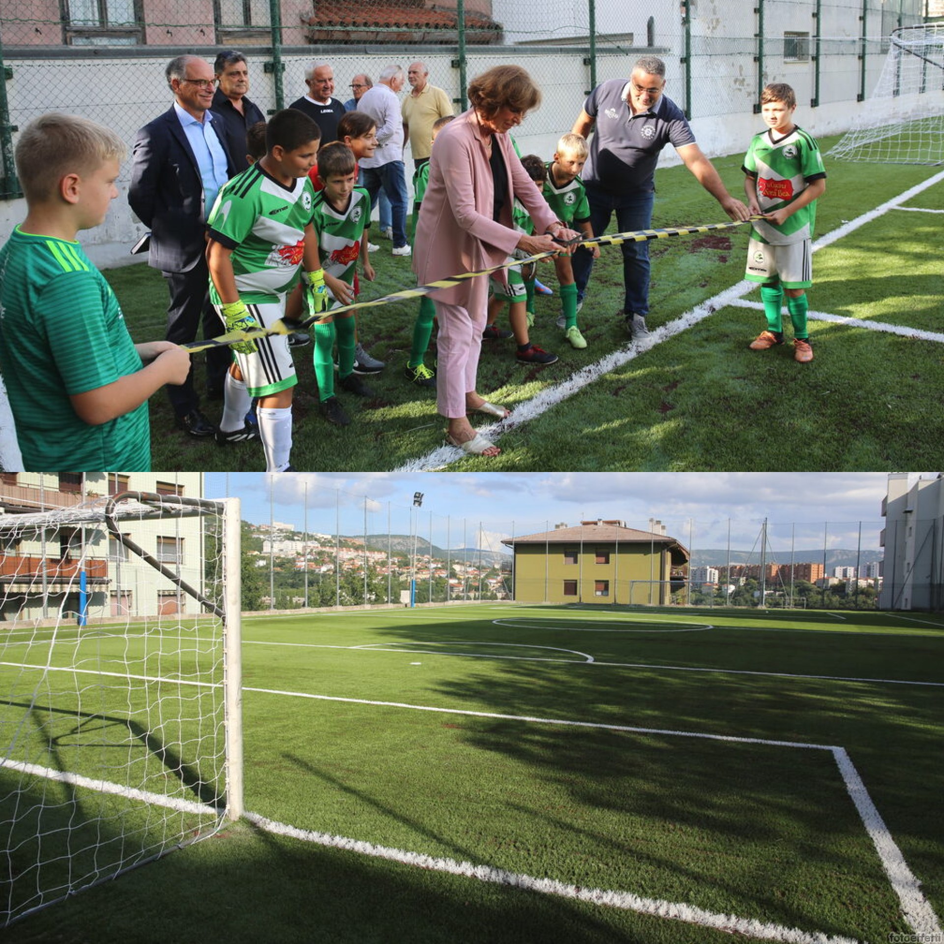 E' stato inaugurato questo pomeriggio il nuovo terreno del campo di via Soncini, un sintetico di ultima generazione davvero molto bello. Alla presenza delle alte sfere della Fondazione Caccia Burlo, proprietaria dello stesso campo, del presidente del Soncini Calcio, di una rappresentanza della Figc e di tanti altri amici accorsi per l'occasione. Presenti anche i bambini del Montuzza Calcio del presidente Beniamino Lezzi che in questa stagione saranno proprio ospitati su questo terreno. Dopo il classico taglio del nastro gli stessi ragazzini hanno disputato il loro primo allenamento nell'impianto servolano. Non solo calcio giovanile in questo campo ma anche gli adulti con gruppi di amici e tornei amatoriali. Campo aperto sette giorni su sette, 365 giorni all'anno e ...se bisestile anche 366.