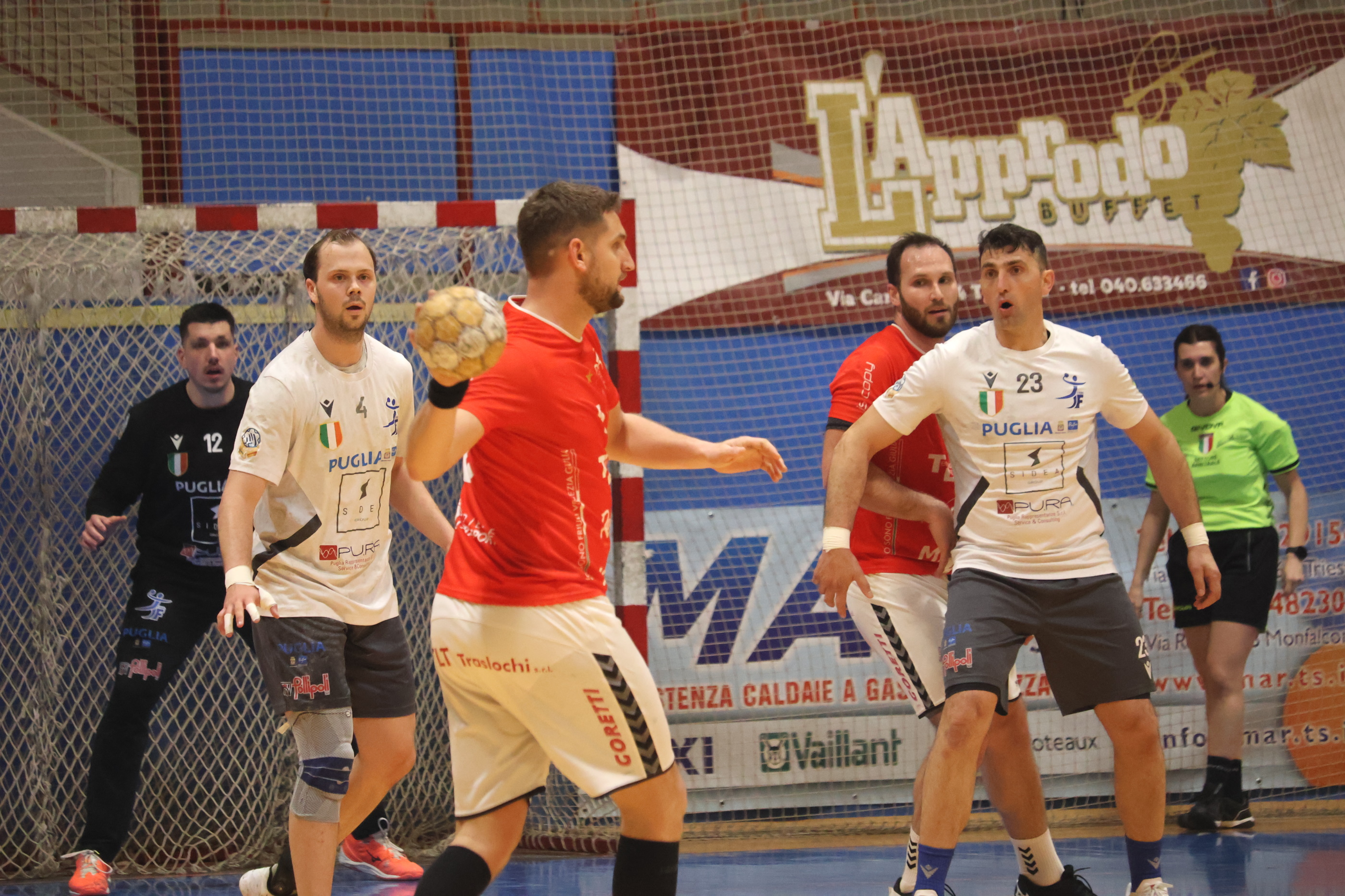 PALLAMANO TRIESTE: Zaro, Postogna, Sedmak, Radojkovic 5, Oveglia 1, Anici, Pernic 4, Nadoh 7, Di Nardo 2, Carpanese, Lo Duca, Leone 5, Visintin 5. All. Bozzola.