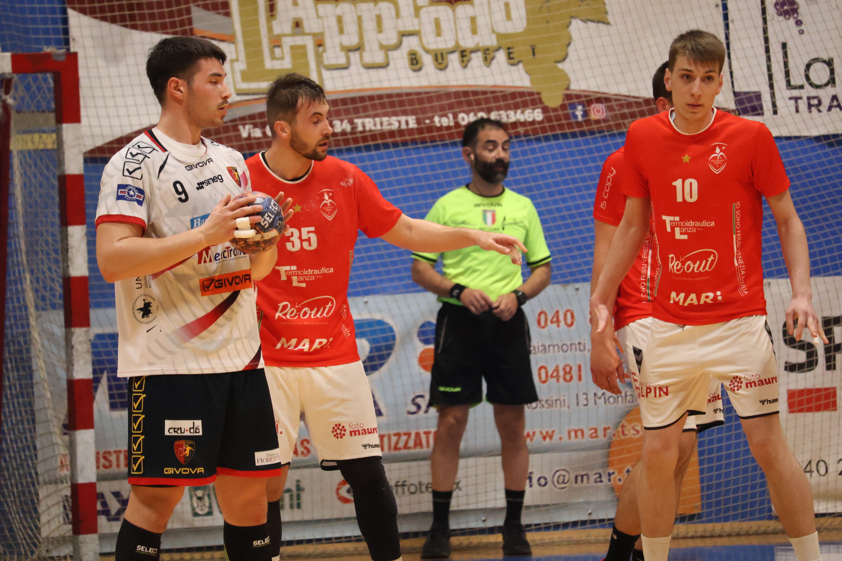 PALLAMANO TRIESTE: Garcia, Postogna, J. Radojkovic 8, Dapiran 3, Mazzarol, Urbaz 1, Di Nardo 1, Ceccardi 2, Visintin, Kosec 1, De Luca 4, Sandrin, Pranjic 1, Andonovski 6, Valdemarin, Ganz. A.. F. Radojkovic.